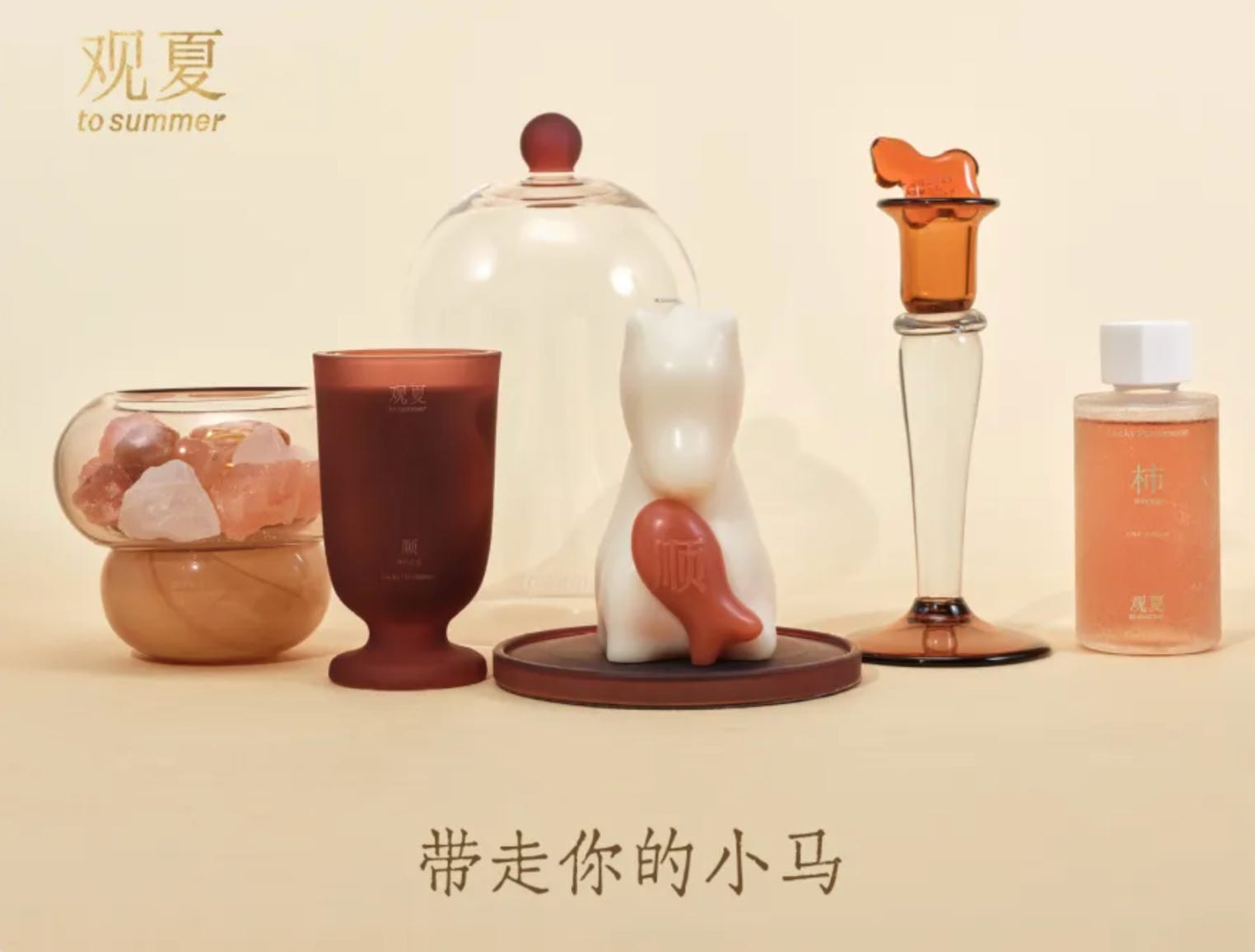 Products: “Drunken Horse Watching Flowers” carousel-style scented candle and “Flying Horse Fortune” crystal fragrance jar